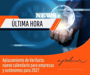 El Ministerio de Hacienda ha decidido retrasar un año la entrada en vigor obligatoria de Verifactu. El plazo original —enero de 2026 para sociedades y julio de 2026 para autónomos— se ha pospuesto al 1 de enero de 2027 para las empresas sujetas a Impuesto de Sociedades, y al 1 de julio de 2027 para autónomos y pymes. elconfidencial.com